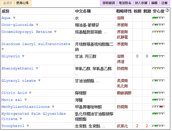 成分寫防腐劑或是一堆巴拉巴拉的或是安心度呈現紅色也不代表這個東西不好喔