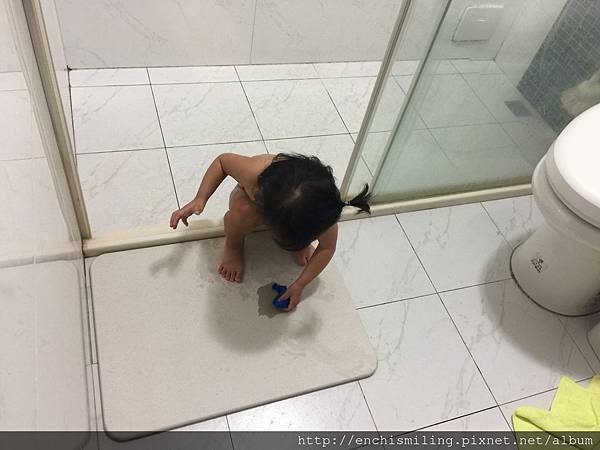 她便跑去我廁所的腳踏墊尿尿......還在那邊玩那攤尿...